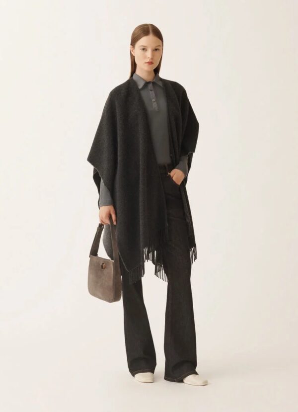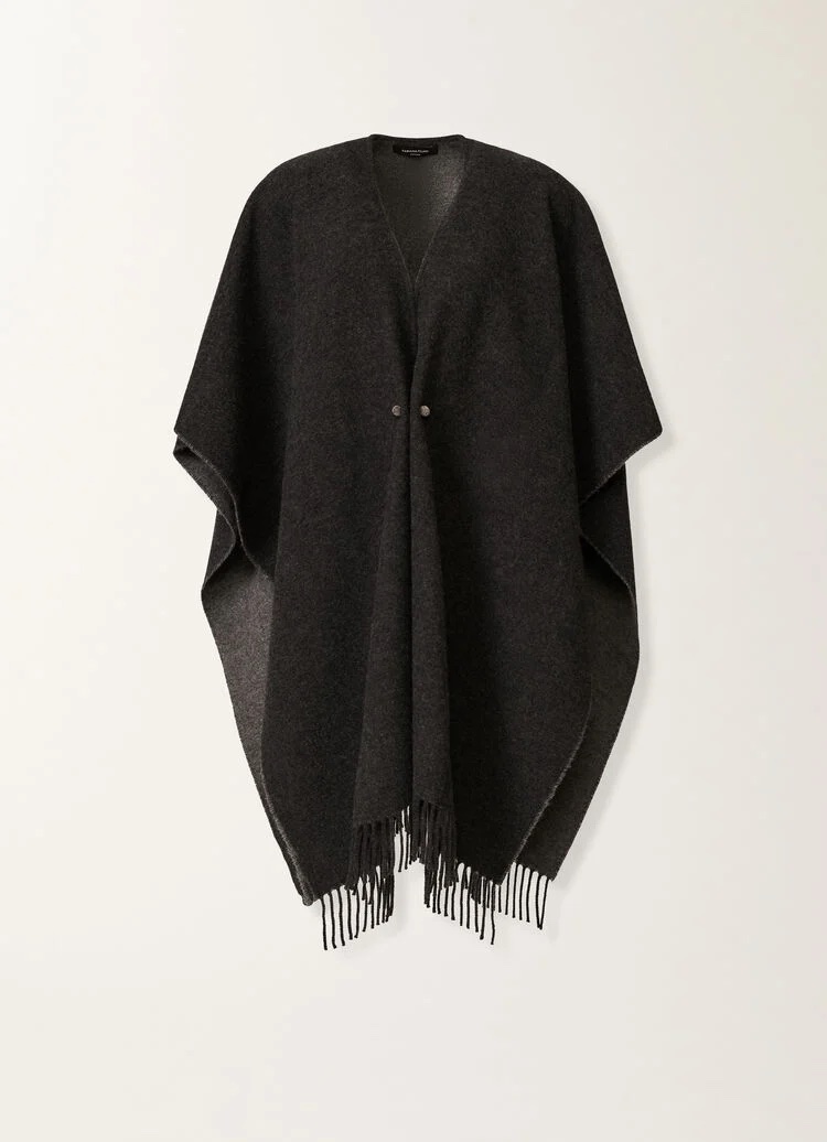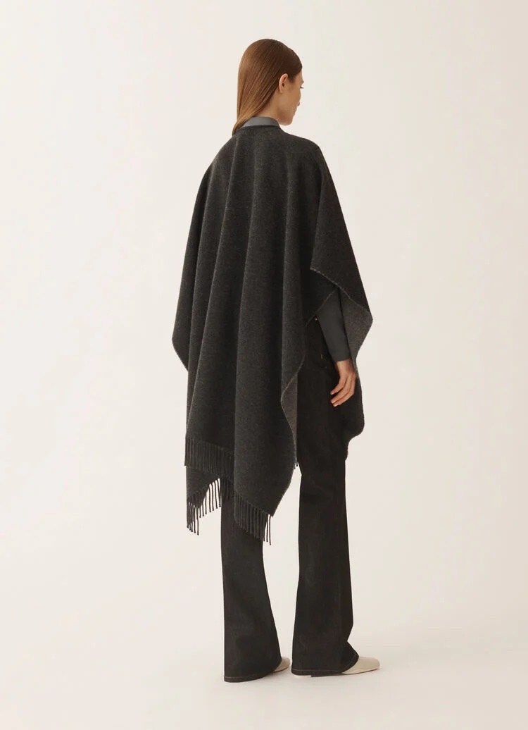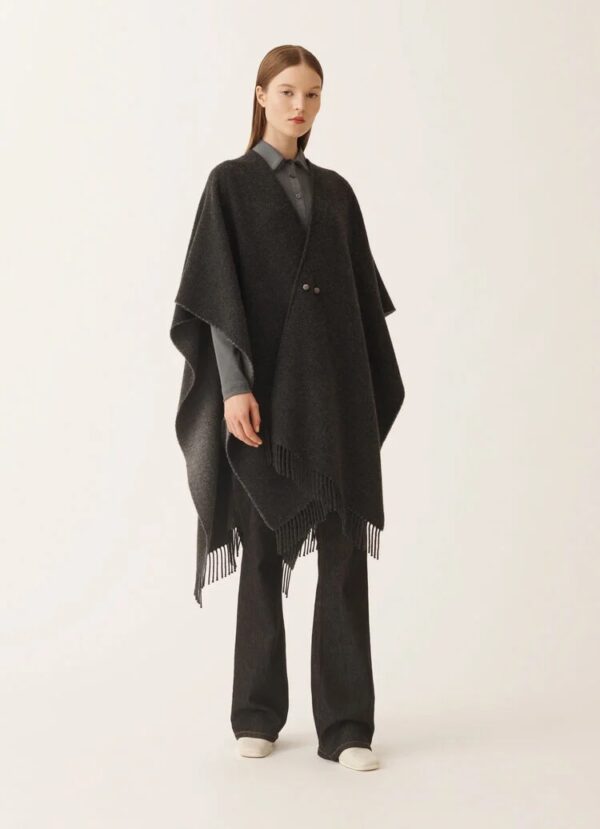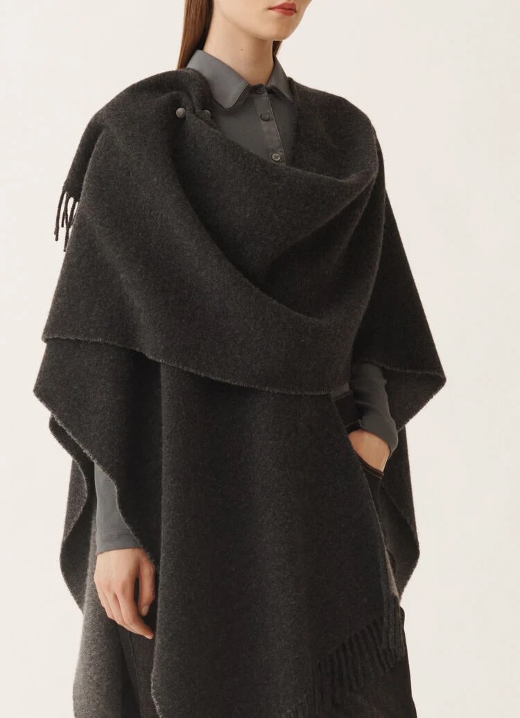 Luxusní oboustranný přehoz v elegantní kombinaci odstínů antracitu a šedé. Vyroben z nádherné přírodní příze z vlny, která zajišťuje jemnost, hřejivost a nadčasovou eleganci. Praktický doplněk šatníku, který nabízí dva vzhledy v jednom.
