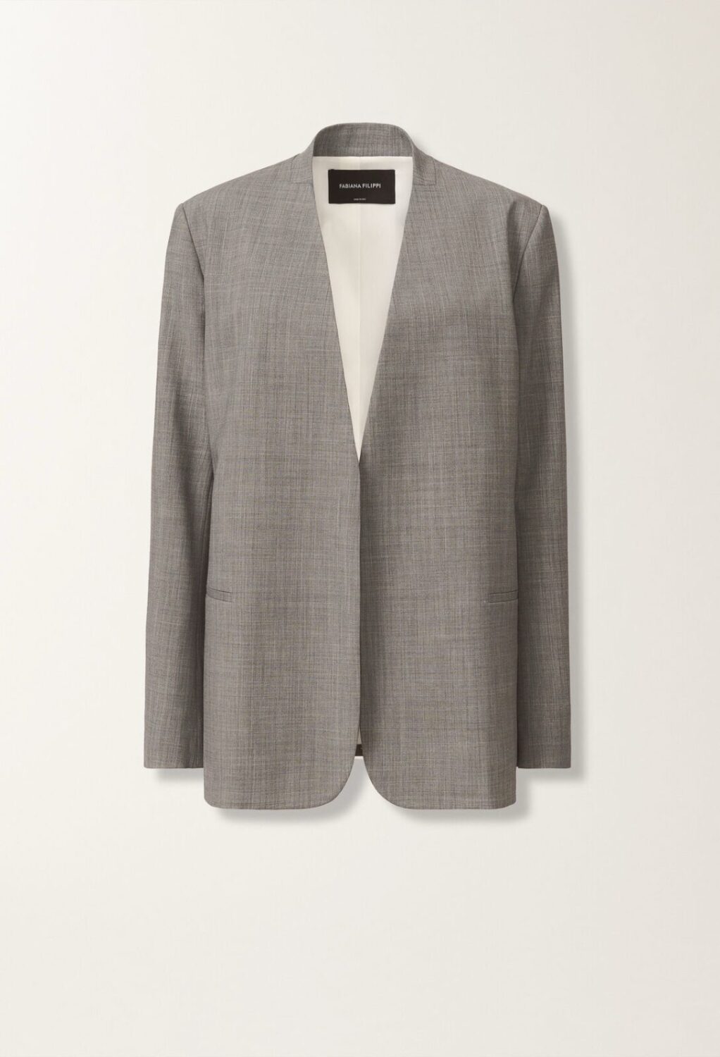 Elegantní sako z kostýmové vlněné látky, které vytváří dokonalý outfit pro moderní business ženu. Precizní střih a nadčasový design podtrhují sofistikovaný a profesionální vzhled.